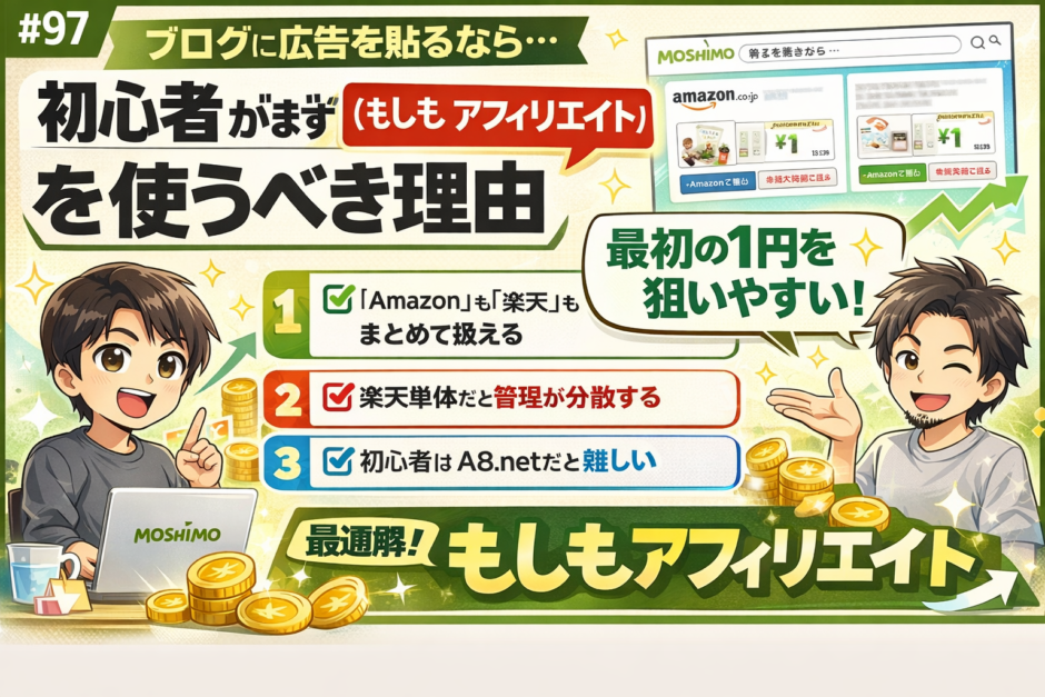 【#97】ブログに広告を貼ったら何が起きる?|初心者がまず「もしもアフィリエイト」を使うべき理由