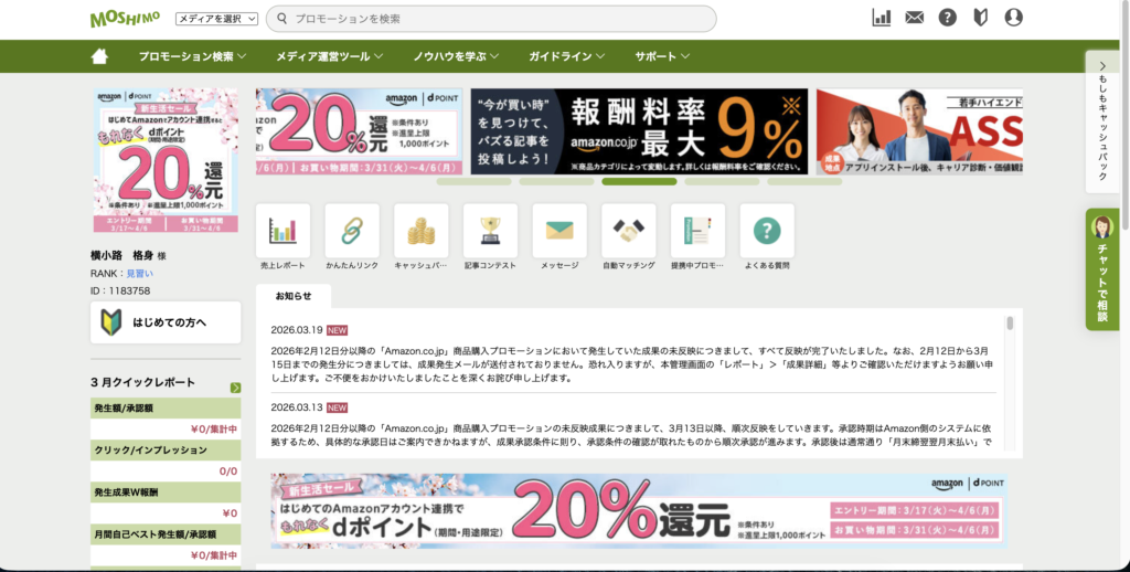 ・もしもアフィリエイト → 初心者向け。最初の1円向き