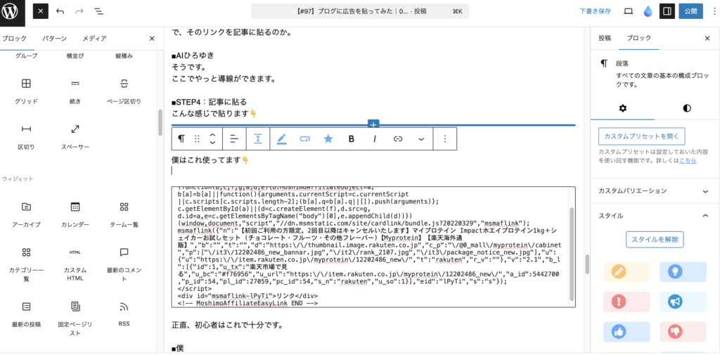 ■STEP4:記事に貼る
